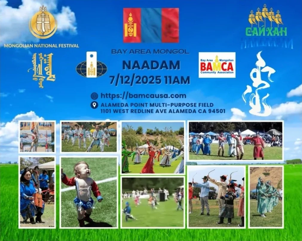 Бэй Аэриагийн монголчуудын 2025 оны баяр наадам 2025 оны 7-р сарын 12-ны билэгт сайхан өдөр Аламеда хотноо болохоор товлож байна.
